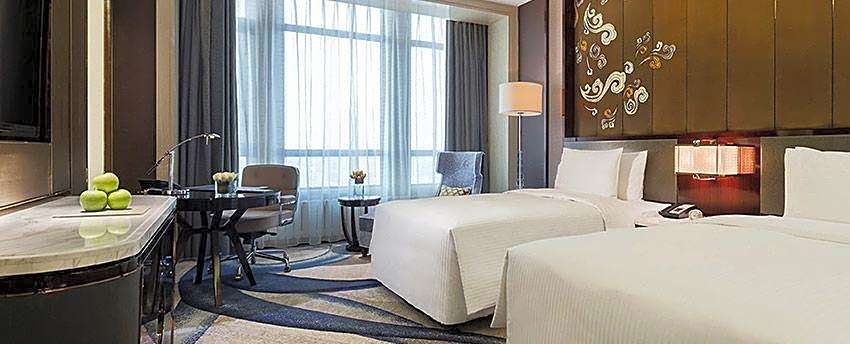 Three on-site dining venues offer a globe-trotting menu in a sleek, modern setting. 美食汇西餐厅 brings Cantonese, Chinese, Japanese, pizza, seafood, steakhouse, sushi, local, European, and grill BBQ flavors to one table. 品珍中餐厅 focuses on Chinese classics, while “和”日餐厅 invites in Japanese-inspired dishes for a contemporary bite. It’s easy to refuel between sights without stepping outside.